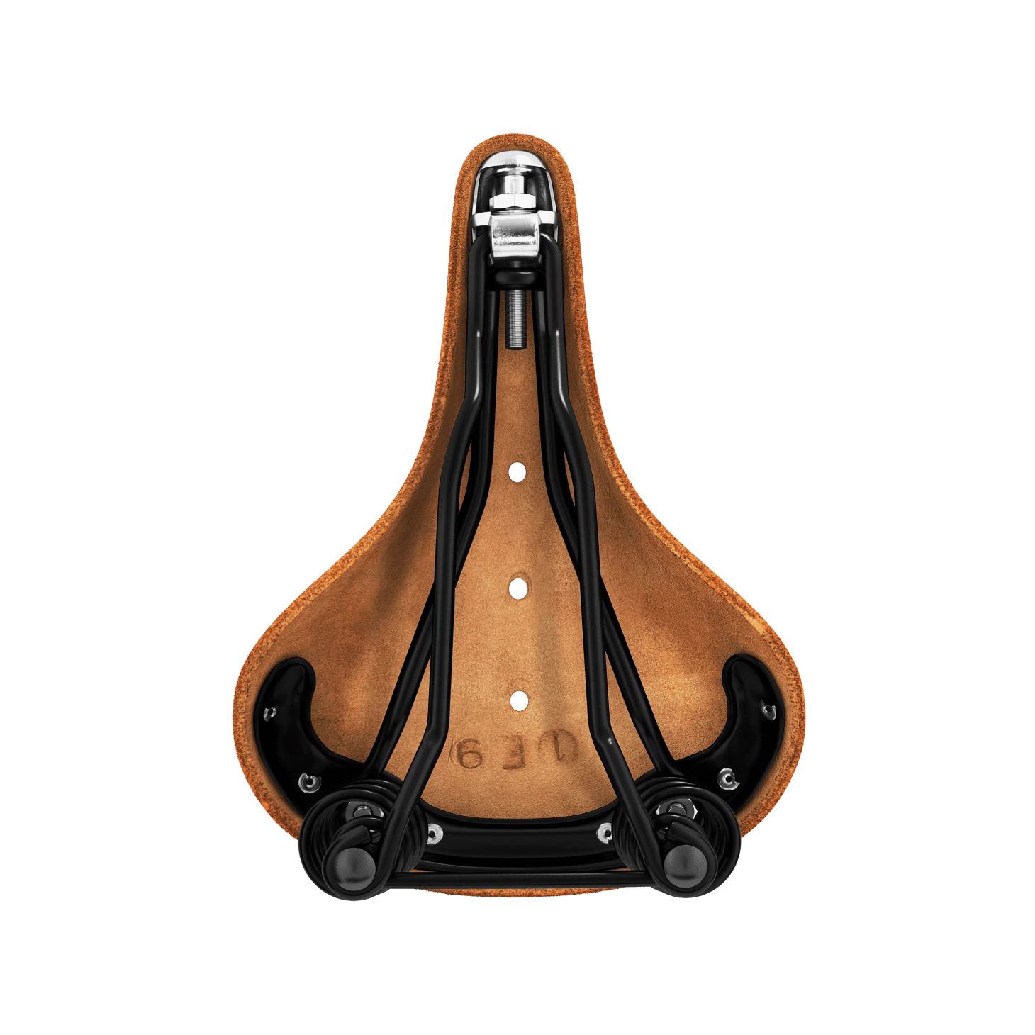 Cadre en acier haute résistance noir avec ressorts hélicoïdaux noirs, revêtement entièrement en cuir noir ou vieilli.