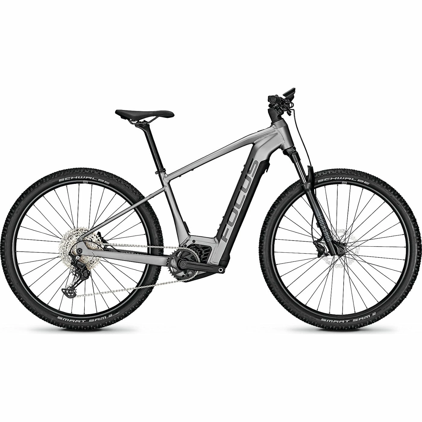 Une incitation à l’évasion quotidienne : Le FOCUS JARIFA² 6.8 incite à faire de longues sorties grâce au puissant moteur électrique Bosch Performance CX de 750 Wh (taille S & ; XS : 625 Wh). La batterie intégrée peut être retirée pour être rechargée. Une fourche à suspension de 100 mm, une géométrie VTT et des roues de 29″ (taille XS : 27,5″) promettent beaucoup de plaisir sur tous les chemins. Des fonctionnalités intelligentes comme le port USB-C élargissent encore ton expérience à vélo : charge simplement ton smartphone ou ton système de navigation. Si tu souhaites emporter plus de bagages, tu peux facilement ajouter un porte-bagages grâce à une possibilité de montage sur le cadre. Les garde-boue, l’éclairage et la béquille peuvent également être montés facilement. Pour toutes les aventures hors des sentiers battus.