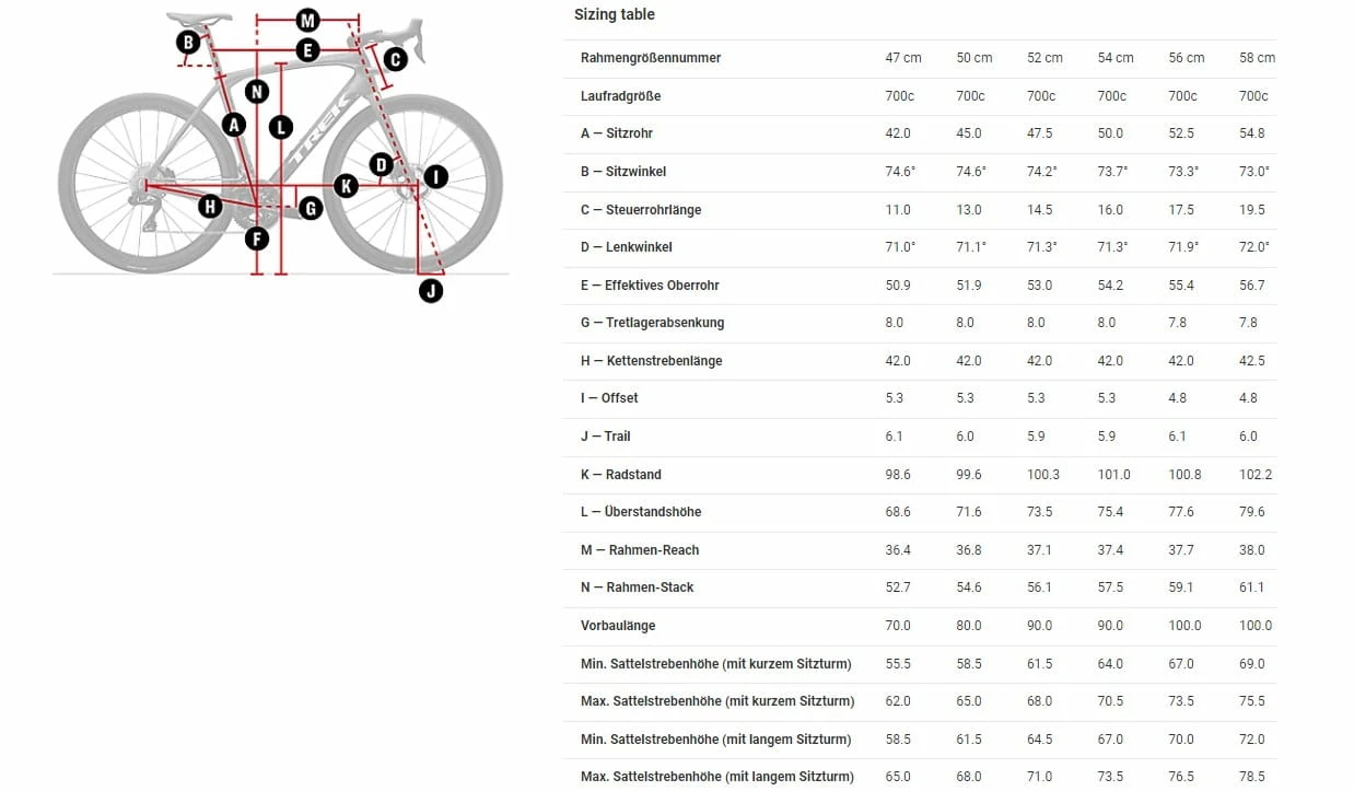 Fourche : Domane SL, carbone, pivot conique en carbone, passage interne du câble de frein, oeillets pour garde-boue, logement pour frein à disque Flat Mount, axe de pédalier 12 x 100 mm
